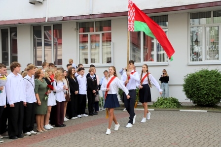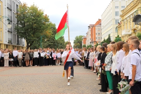 Почётное право дать первый звонок было предоставлено учащемуся 10 «Д» класса, победителю заключительного этапа республиканской олимпиады по учебным предметам «Белорусский язык и литература» Шведову Ивану и победительнице заключительного этапа республиканской олимпиады по учебным предметам «Русский язык и литература», учащейся 11 «А» класса Шамшуркиной Варваре.