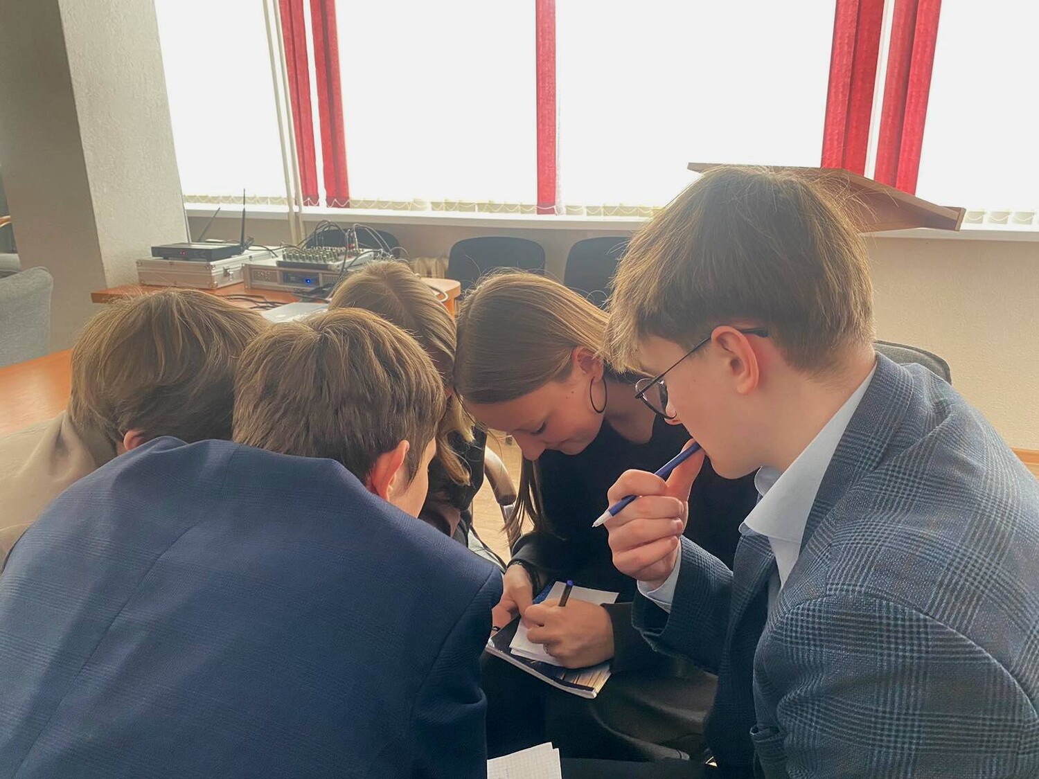 Сегодня в Лицее Белорусско-Российского университета имени Л.Е.Маневича стартовала предметная неделя математики и информатики. В актовом зале лицея прошел первый отборочный тур игры "Что? Где? Когда?" с легким математическим уклоном. В упорной схватке сошлись команды 9 "В", 10 "Б", 10 "Г", 10 "Д",11 "А", 11 "Б", 11 "В" классов. Учащиеся блеснули своей эрудицией и знаниями в вопросах, касающихся всего того, что связано с царицей всех наук - математикой. Места первого отборочного тура расположились следующим образом: I место занял 9 "В" класс, II место забрал 11 "В", III место осталось за 10 "Г" классом. Этим командам предоставится возможность сразиться за победу в турнире в пятницу 11 апреля, когда состоится финальное состязание интеллектуалов.
