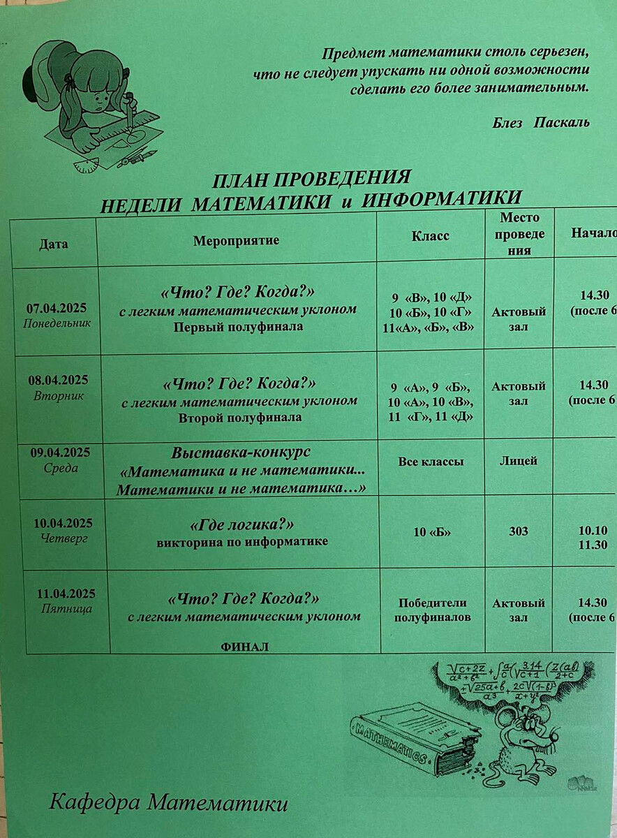 А здесь вы можете ознакомиться с планом мероприятий предметной недели математики и информатики