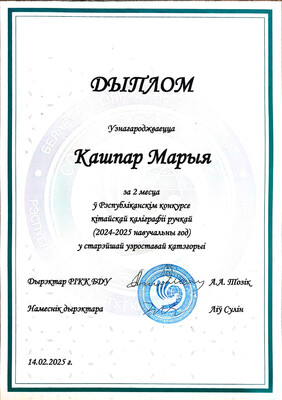 Поздравляем Кашпор Марию, учащуюся 11 "А" класса, завоевавшую диплом II степени в старшей возрастной категории!