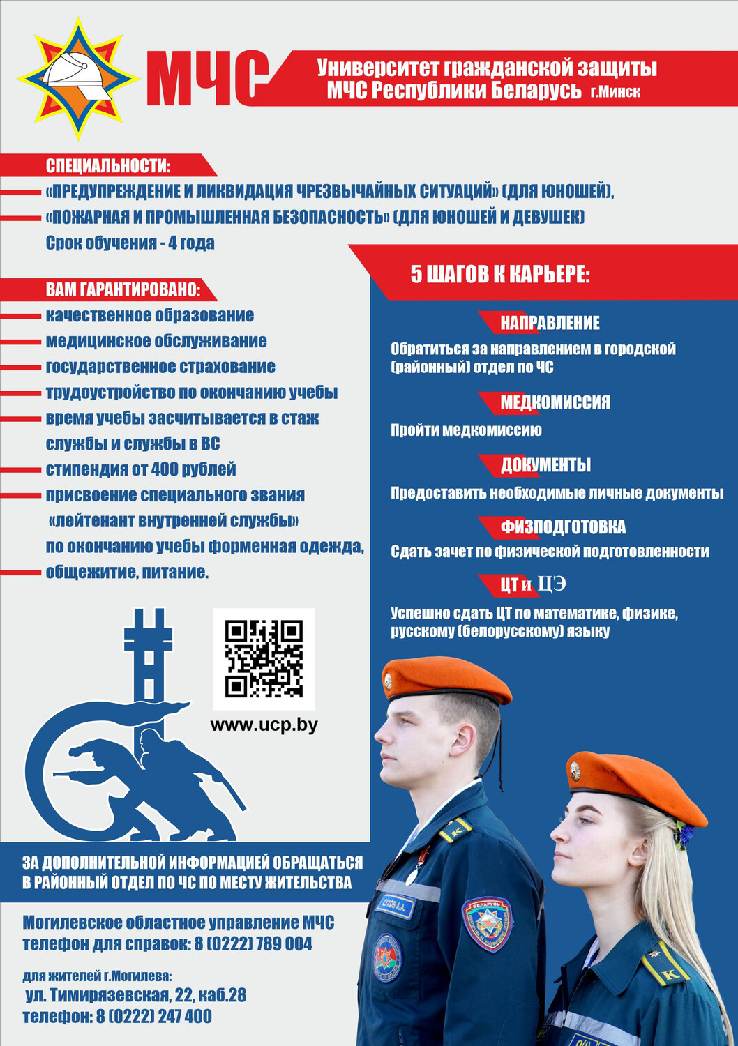 22 марта 2025 года профориентационные мероприятия состоятся в Университете гражданской защиты МЧС Республики Беларусь.