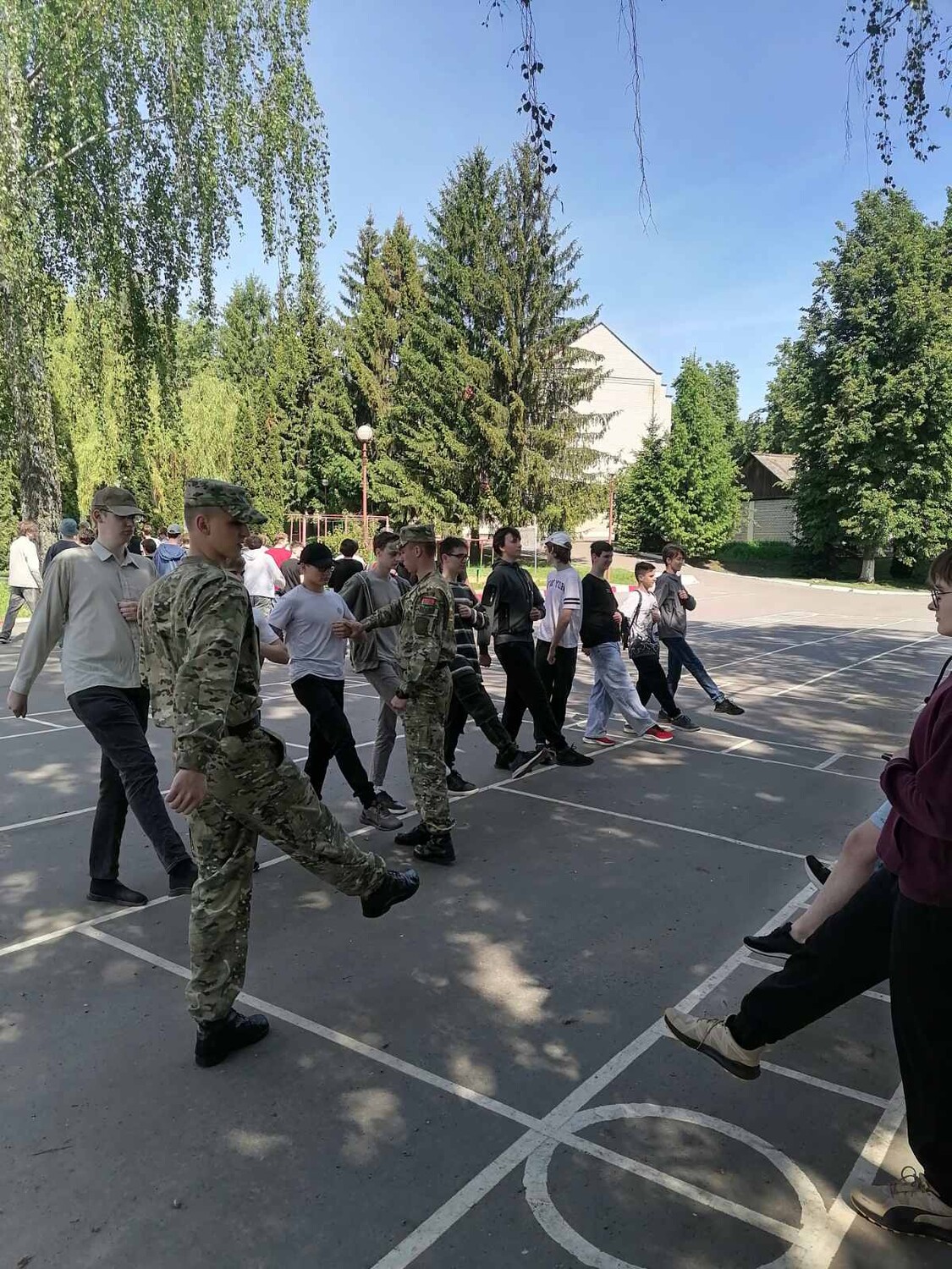 Офицеры и военнослужащие срочной службы провели занятие по строевой подготовке.