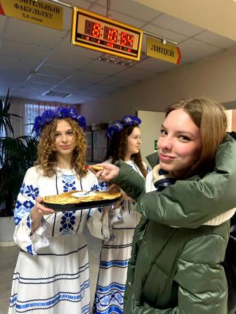 У нашым ліцэі з павагай ставяцца да народных звычаяў, таму ў чацвер, 19 лютага, тут разгарнуліся масленічныя гулянні. Вядома, разводзіць адкрыты агонь і спальваць пудзіла забаранілі нормы пажарнай бяспекі, але без галоўнага не абышлося: спявалі песні, вадзілі карагоды і, зразумела, елі бліны.